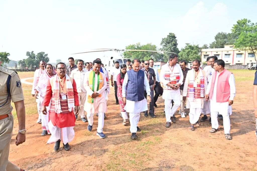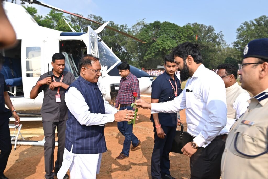 मुख्यमंत्री विष्णुदेव साय आज कुनकुरी विधानसभा अन्तर्गत माध्यमिक विद्यालय खेल मैदान हेलीपैड, ग्राम कण्डोरा पहुंचे। इस अवसर पर सांसद राधेश्याम राठिया, कमिश्नर नरेंद्र दुग्गा, आईजी दीपक कुमार झा, कलेक्टर रोहित व्यास, पुलिस अधीक्षक शशिमोहन सिंह, वनमण्डलाधिकारी शशि कुमार सहित जनप्रतिनिधियो, अधिकारियों और रौतिया समाज के पदाधिकारियों ने उनका आत्मीय स्वागत किया।