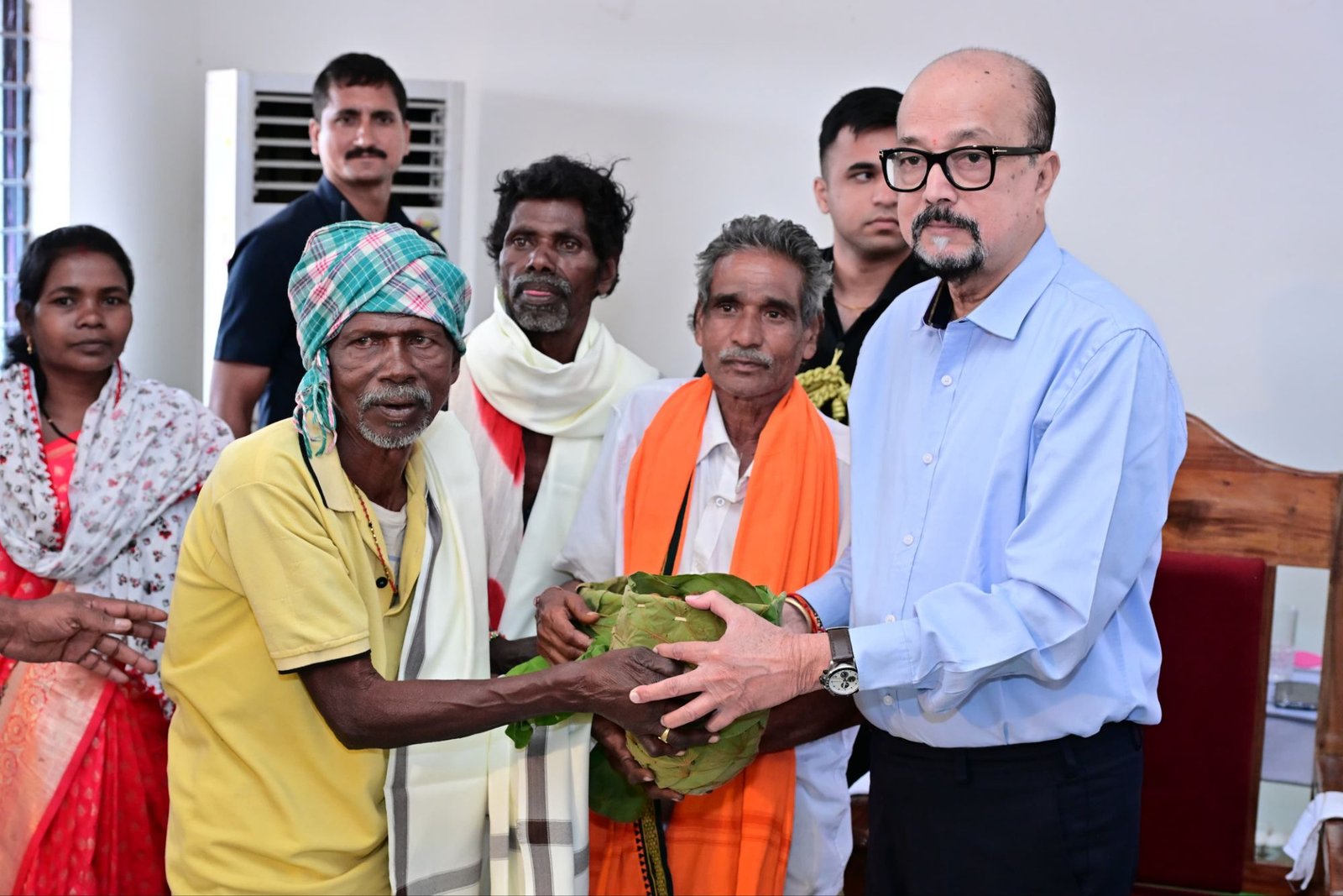 बिरहोरों ने राज्यपाल को जंगल से एकत्रित तेंदूफल और स्व निर्मित रस्सी भेंट कर मछली पालन हेतु तालाब निर्माण की मांग रखी