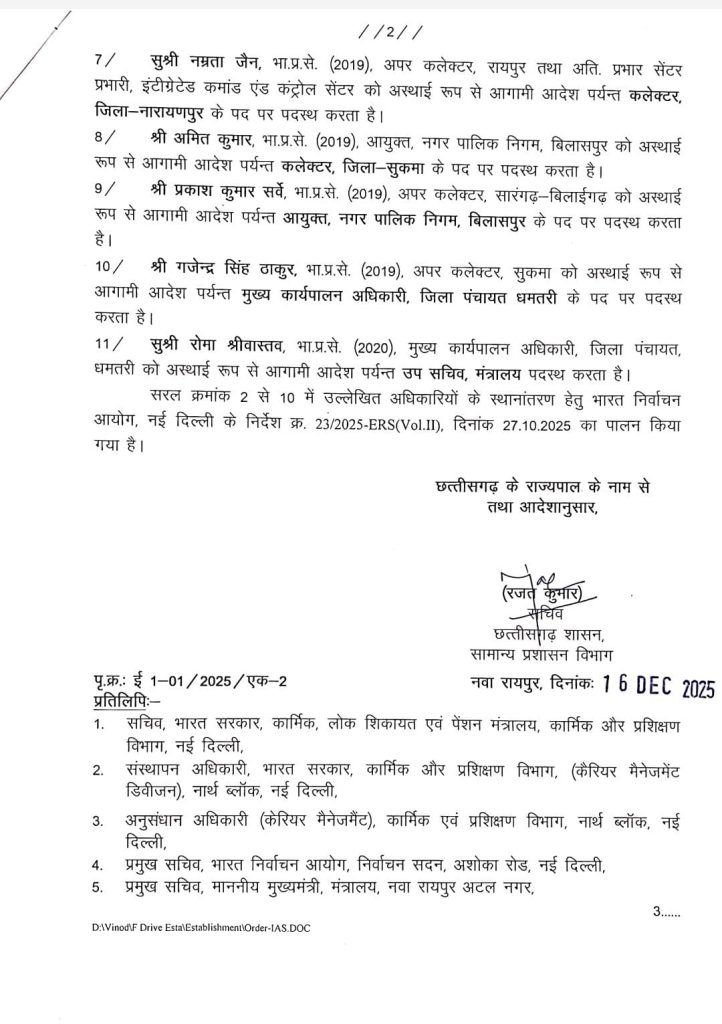 अमित कुमार अब बिलासपुर निगम आयुक्त से सुकमा के नए कलेक्टर होंगे।